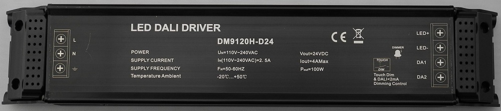 The 100W constant voltage DALI driver series products are two product: DM9120H-D12 which output DC12V and DM9120H-D24 which output DC24V.They are the same in apperance and have only several differences which can fit more circumstances.